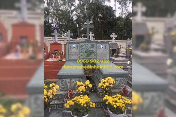 Nói đến địa chỉ mua mộ Công giáo đá xanh giá rẻ, uy tín tại Ninh Bình thì không thể không nói đến Đá mỹ nghệ Ninh Bình 35. Là một trong những cái tên uy tín hiện nay, khách hàng có thể yên tâm tìm đến với các thiết kế mộ đá tại Đá mỹ nghệ NInh Bình. Trong đó bao gồm các sản phẩm mộ đá công giáo.